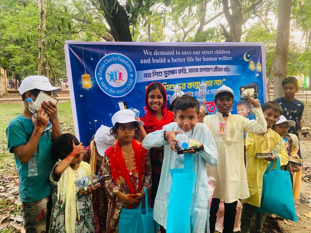 Eid clothing distribution for street children by Pathsu Charity Foundation in Bangladesh